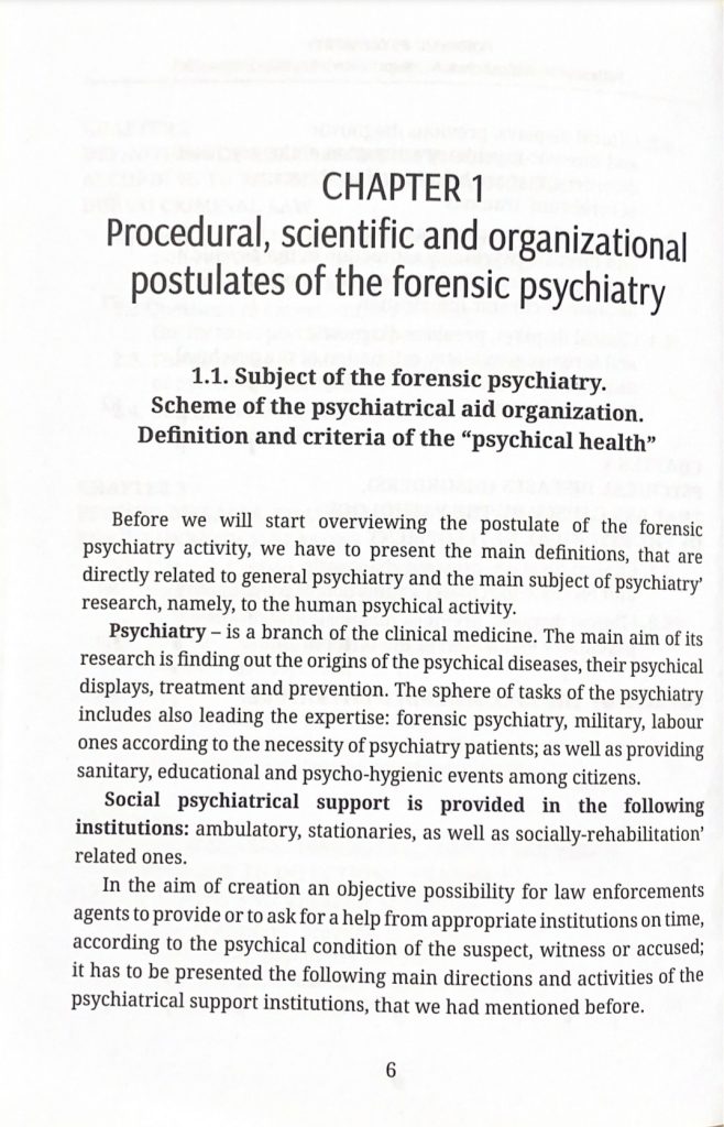 Before we will start overviewing the postulate of the forensic psychiatry activity, we have to present the main definitions, that are directly related to general psychiatry and the main subject of psychiatry’ research, namely, to the human psychical activity.