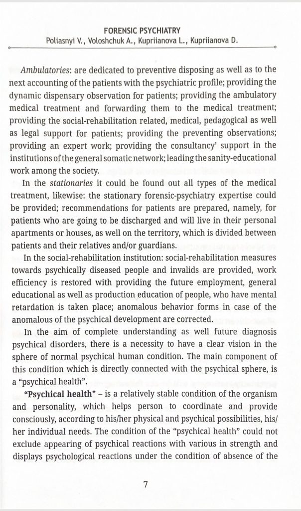 FORENSIC PSYCHIATRY Poliasnyi V., Voloshchuk A., Kupriianova L., Kupriianova D.