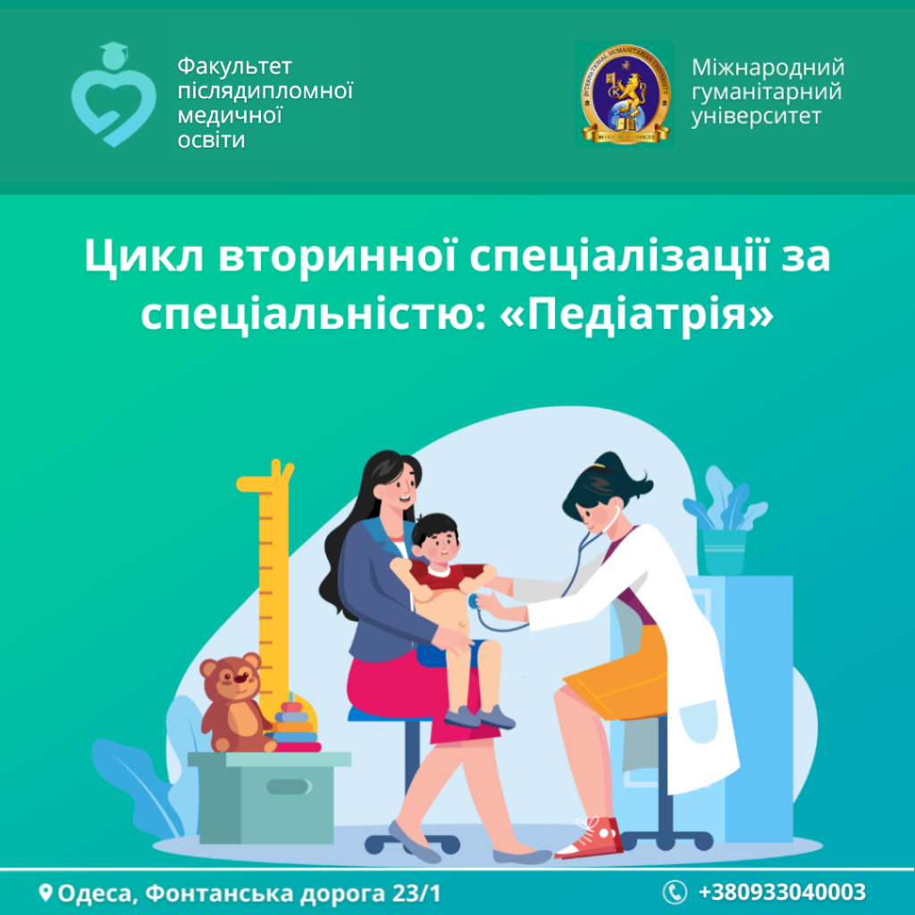 👋 Факультет післядипломної медичної освіти Міжнародного гуманітарного університету відкриває набір на цикл спеціалізації за спеціальністю «Педіатрія».