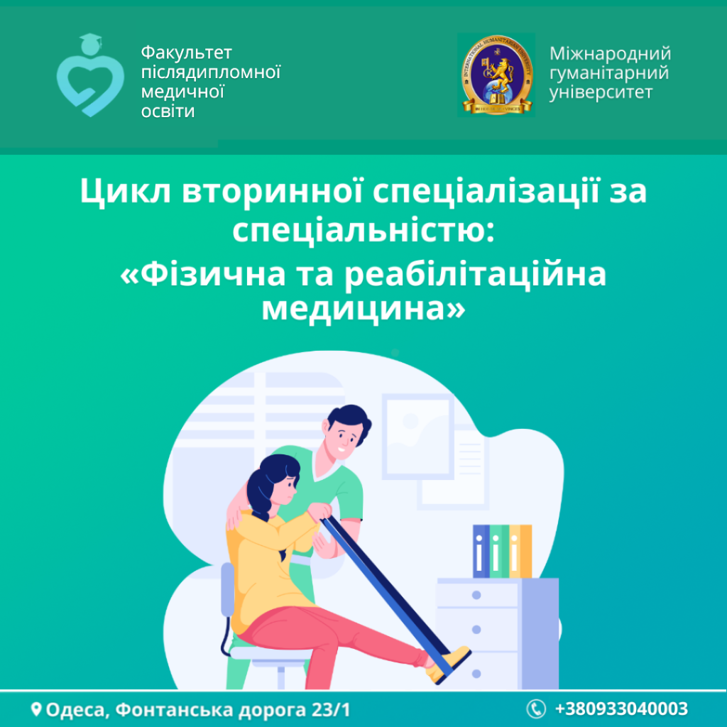 👩🏫 Факультет післядипломної медичної освіти Міжнародного гуманітарного університету запрошує лікарів на цикл спеціалізації за спеціальністю «Фізична та реабілітаційна медицина»