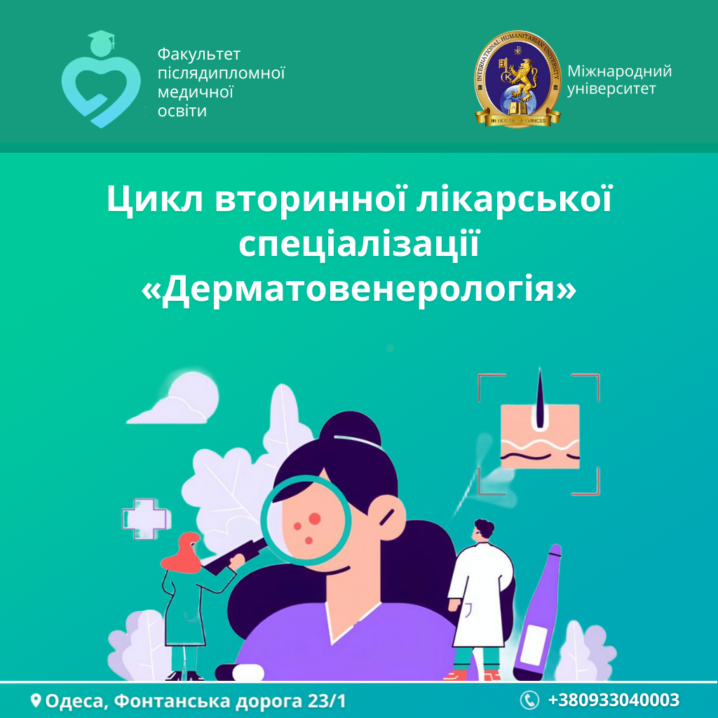 👋 Факультет післядипломної медичної освіти Міжнародного гуманітарного університету відкриває набір на цикл спеціалізації за спеціальністю «Дерматовенерлогія».